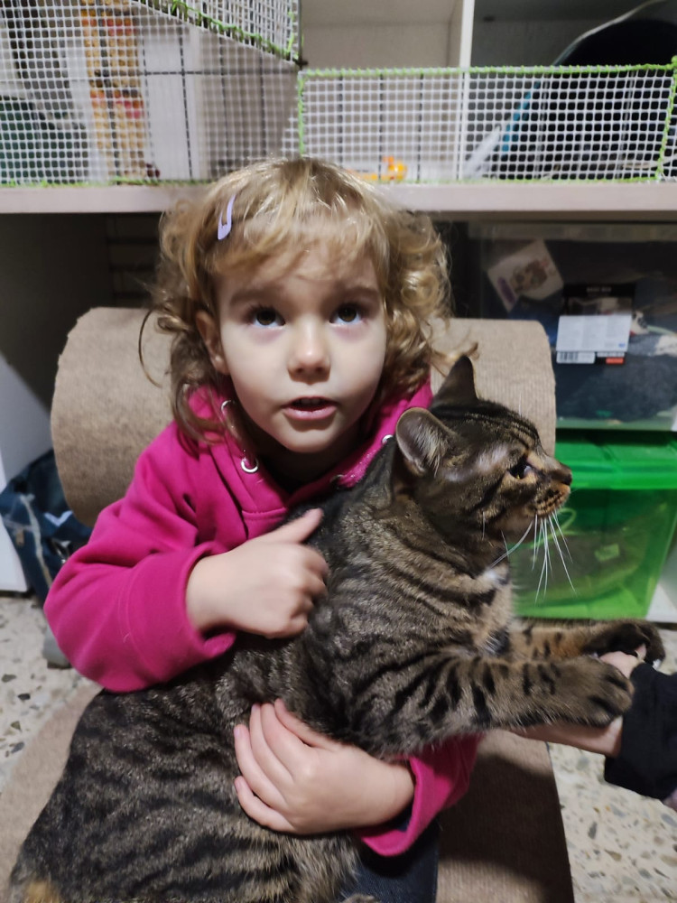 Estaria genial en una casa con niños o compartiendo su vida con otros animales, ya que es joven y muy sociable, por lo tanto se adaptaría de maravilla.