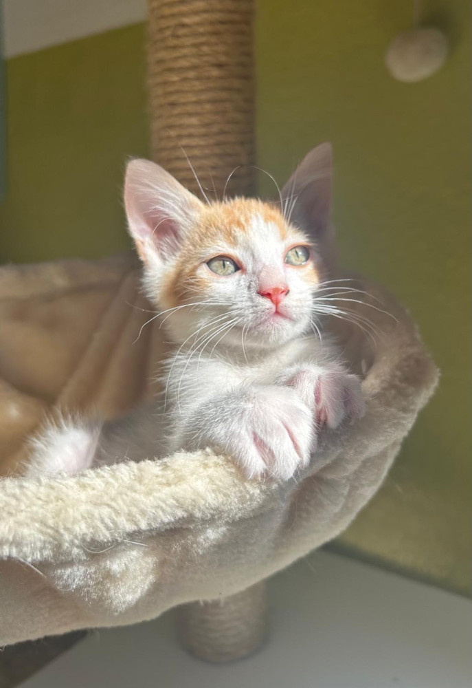Rescatada cuando apenas tenia 15 dias de vida, bandonada en una caja de carton junto con sus hermanos. Han sido criados a biberon por las compañeras del Refugio.